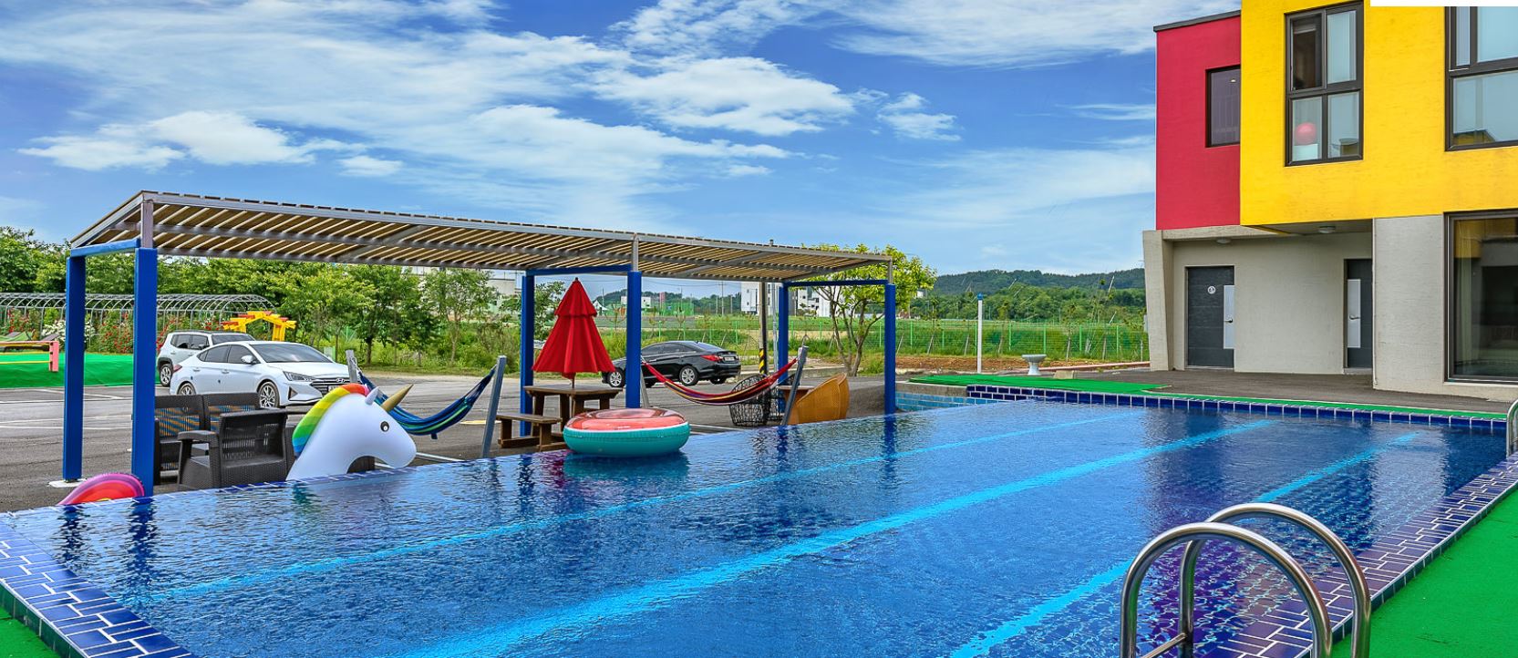 대부도 풀빌라 중 '빵빵키즈풀빌라'는 아이들의 파라이다이스라고 불린다고 합니다. 아이들위해 모든 시설이 갖추어져 있다고하니다. 모든 풀빌라 객실에는 아이들을 위한 키즈풀빌라가 위치해있고 아이들이 안전하게 뛰어놀 수 있는 시설이 갖추어져 있습니다.