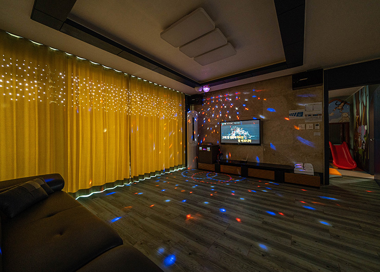 객실 내에 노래방 기계가 설치되어 있어 신나게 아이들과 노래를 부르며 뛰어 놀 수 있으실 것 같습니다. 프라이빗한 독채에서 평소에 부르고 싶었던 노래를 부르시면서 육아스트레스도 한꺼번에 날려버리세요.
