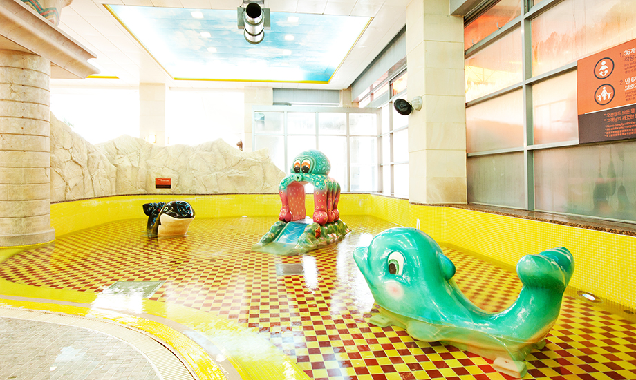 다음에는 더욱 어린아이들과 오시는 분들이 있으실 것 같아서요. '키즈풀' 입니다. 수심 30cm로 어린아이들을 위해 만들어진 시설인데요. 키즈풀은 유아들을 위한 물놀이 공간으로 소형 슬라이드 및 상상력을 유발시키는 각종 조형물은 안전뿐만 아니라, 정신, 육체적인 발육까지도 세심하게 배려하였습니다.