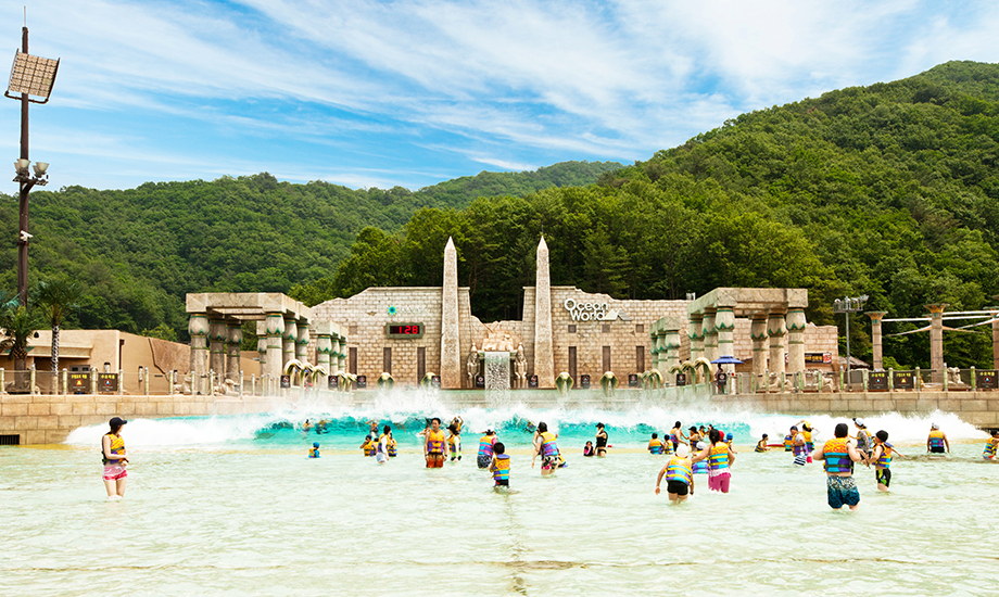 강원 지역의 능선이 굽이치는 청정 수풀림 속에 상상을 초월하는 바다를 옮겨 놓은 듯한 착각을 불러 일으키고자 세워진 오션월드는 이집트를 쏙 빼 닮았습니다. 이글거리는 태양의 햇살이 작열하는, 지중해와 아프리카 대륙이 맞닿아 있는 이집트에는 인류의 삶에 축복을 주는 오아시스와 고대 이집트의 화려한 문화유산이 고스란히 담겨있는 신비로운 나라로 세계 각국의 관광객들에게 꾸준히 사랑 받고 있습니다. 피라미드, 스핑크스, 파라오 등 이집트의 숨결을 느낄 수 있는 다양한 조형물들은 오션월드를 더욱 매력적인 곳으로 빛나게 합니다.